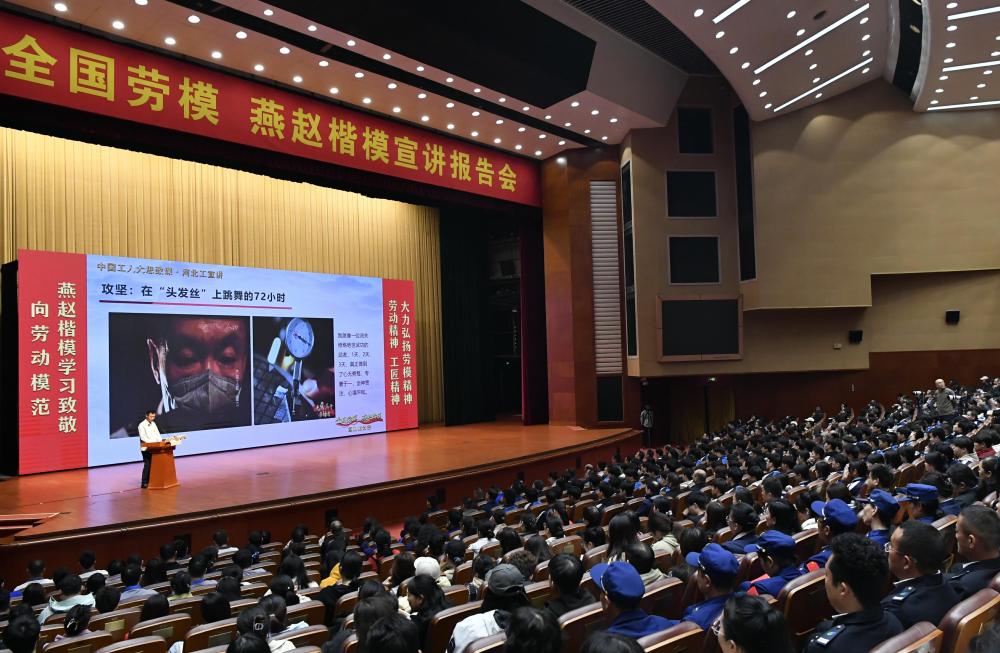 10月17日下午,秋雨微凉,石家庄人民会堂大礼堂内却暖意融融、掌声阵阵。由中共河北省委宣传部、河北省总工会主办,中共石家庄市委宣传部、石家庄市总工会、河北工人报社承办的全国劳模、燕赵楷模宣讲报告会(石家庄专场)在此圆满举行。全国劳模、大国工匠、燕赵楷模、中国电科网络通信研究院钳工首席技师夏立,全国劳模、大国工匠、燕赵楷模、开滦集团中润公司甲醇分厂工艺员邓晶,全国劳模,河北长安汽车有限公司总装一车间汽车调试工张赫,全国劳模、石家庄煤矿机械有限责任公司毛料分厂焊接机器人班组长关虎在会上做报告分享,全市相关企业、机关事业单位劳模工匠、职工代表以及职业院校师生共850余人现场聆听报告。