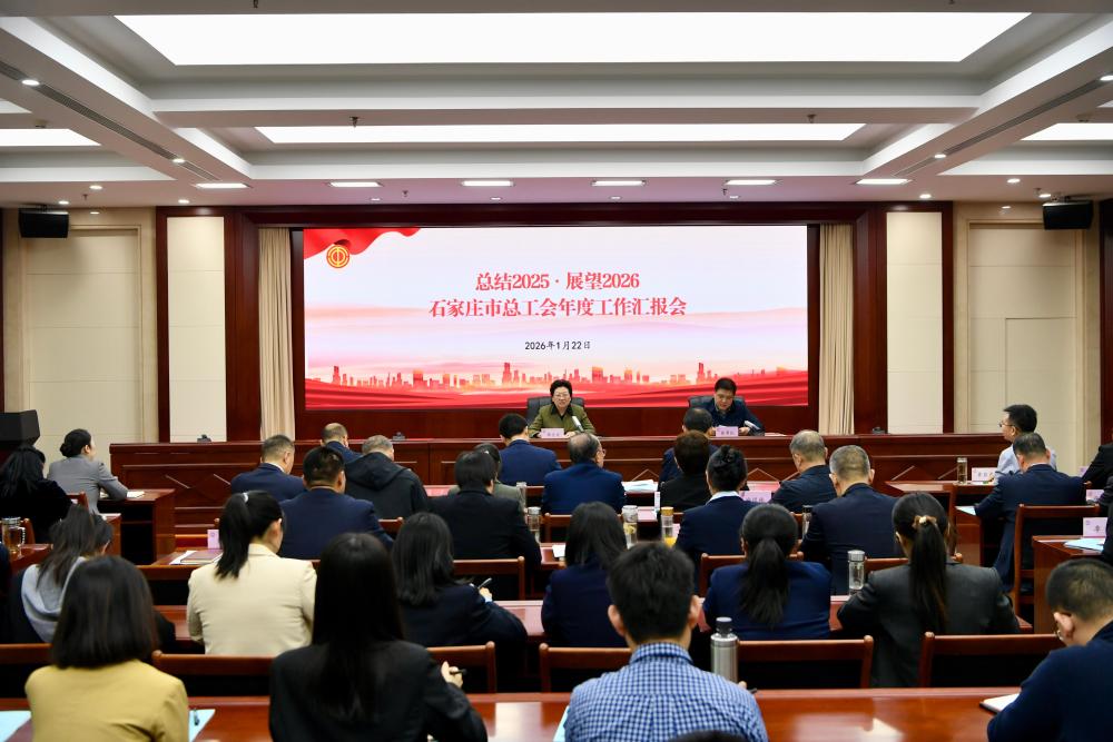 2026年1月22日,石家庄市总工会召开“总结2025·展望2026”工作汇报会,市人大常委会党组副书记、副主任,市总工会主席李志宏出席会议并讲话,市总工会党组书记、常务副主席彭勇民主持会议。市总领导班子成员、机关全体干部职工、直属事业单位主要负责同志参加会议。