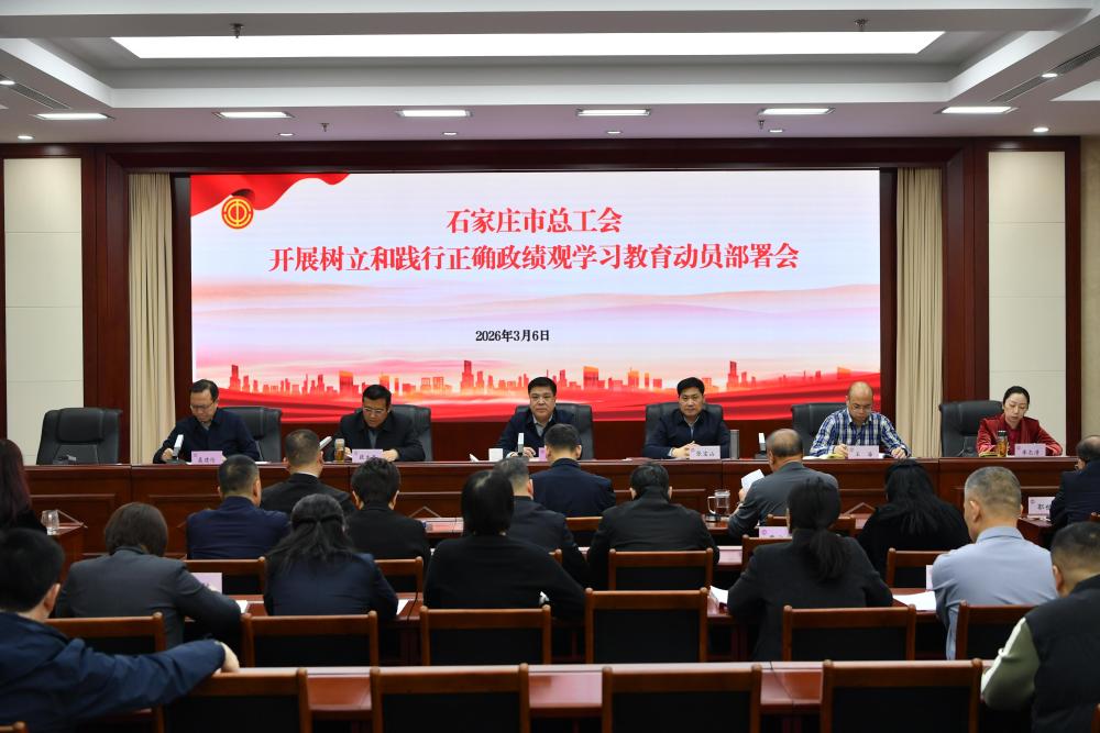 2026年3月6日,石家庄市总工会党组召开扩大会议,传达学习中央党的建设工作领导小组会议精神,省委常委会扩大会议精神以及市委常委会扩大会议精神,研究部署市总工会树立和践行正确政绩观学习教育工作。市总工会党组书记、常务副主席彭勇民主持会议并讲话,市总工会领导班子成员参加会议。市总工会县处级领导干部,驻会产业工会、机关各部室负责人,所属事业单位主要负责同志,机关及所属事业单位各党支部书记列席会议。